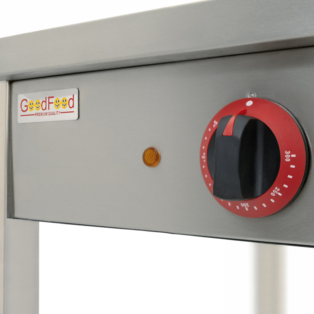 Млинница электрическая GoodFood CM10TOP создана для стабильной выпечки идеальных блинов и крепов в потоке. Большая чугунная поверхность позволяет работать с заготовками до 400 мм, а равномерный прогрев и терморегулятор 50-300 С обеспечивают точный контроль степени прожарки. Корпус из нержавеющей стали устойчив к интенсивной эксплуатации, а в комплекте идет деревянный шпатель для теста — можно начинать работу сразу после распаковки. Модель однопостовая, компактная по габаритам 580x580x380 мм и рассчитана на стандартную сеть 220 В. Гарантия 12 месяцев подтверждает ресурс и надежность бренда GoodFood.