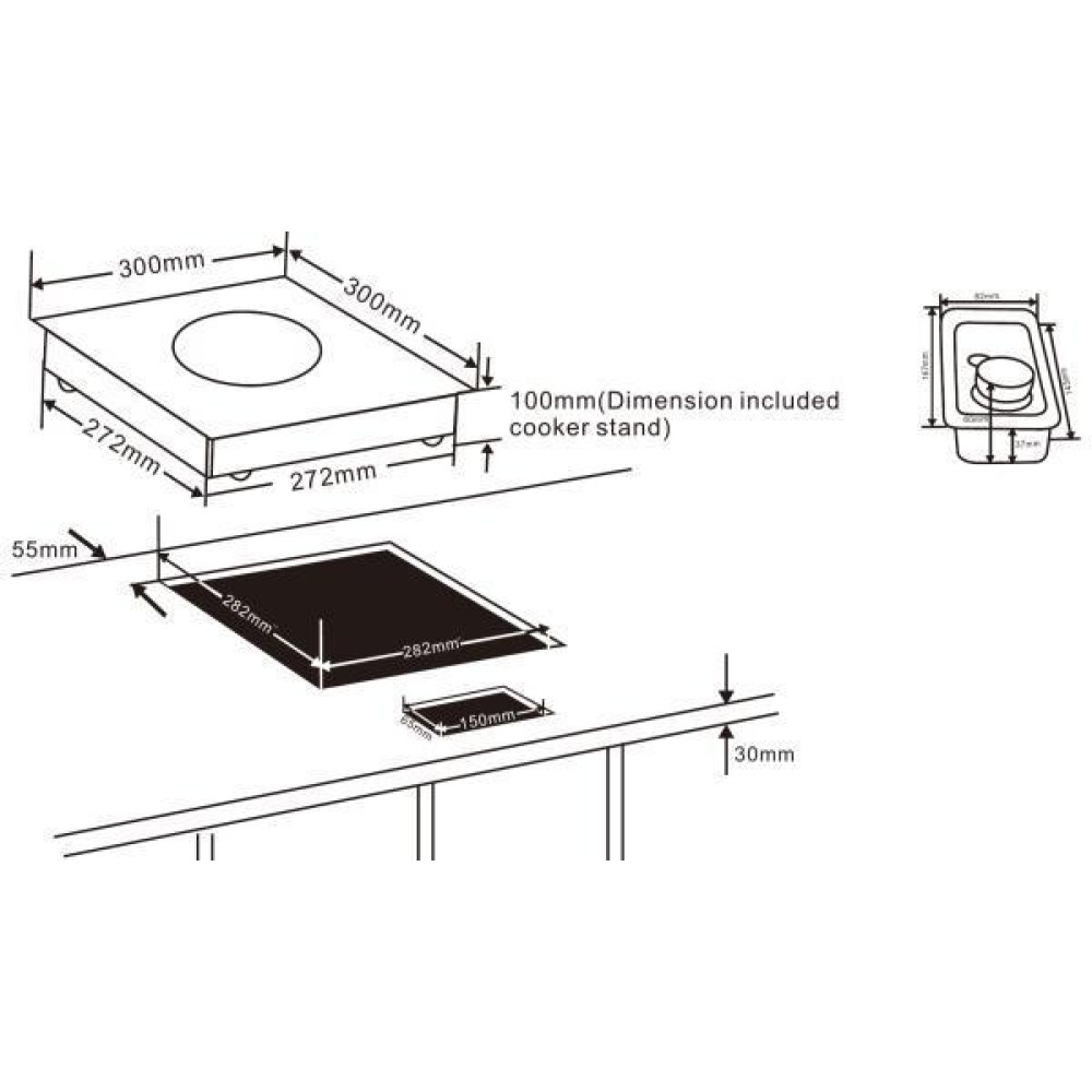 Размер конфорки300x300 мм