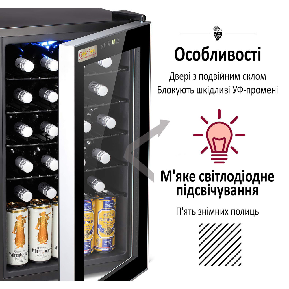 Шкаф холодильный для напитков GoodFood BC75 — это современное и компактное оборудование, которое обеспечивает профессиональное хранение и эффективное охлаждение бутылок. Модель идеально подходит для заведений, где важно сочетание функциональности, стильного дизайна и экономии пространства. Благодаря цифровому управлению и продуманной конструкции, напитки всегда будут готовы к подаче при оптимальной температуре.