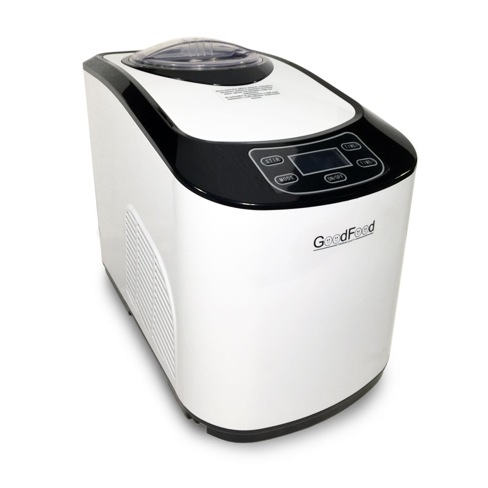 Апарат для приготування морозива (фрізер) GoodFood ICM15 — компактне рішення для швидкого запуску продажів натурального морозива, сорбетів і заморожених десертів. Один цикл 30-60 хв забезпечує до 1,5 літри готового продукту, а температура заморожування -35 C дає шовковисту текстуру без кристалів льоду. РК-дисплей спрощує контроль процесу, енергоефективний двигун 140 Вт та холодоагент R600a зменшують витрати. Модель настільна, працює від 220В/50Гц — встановлення без складнощів.