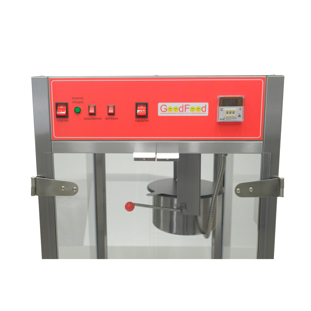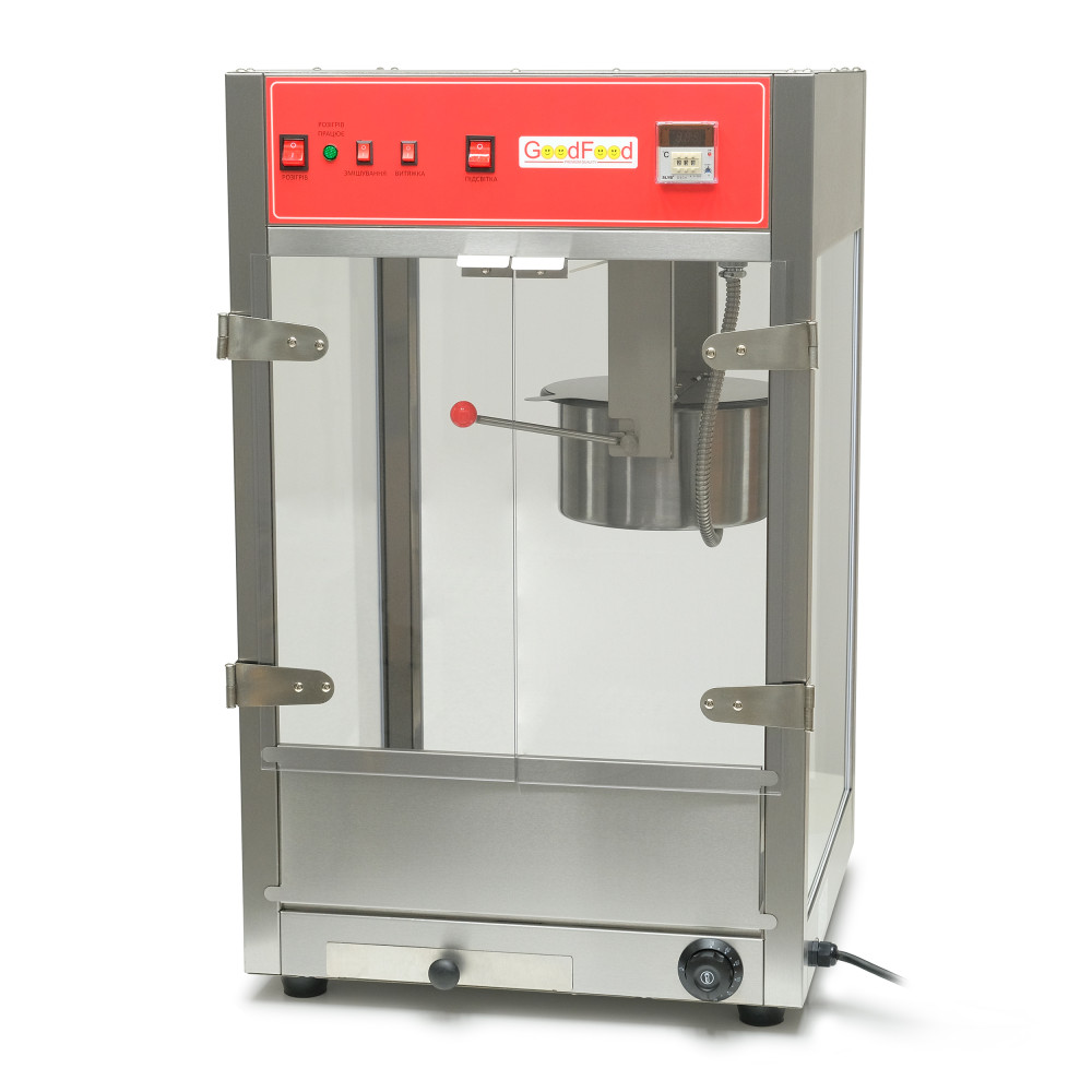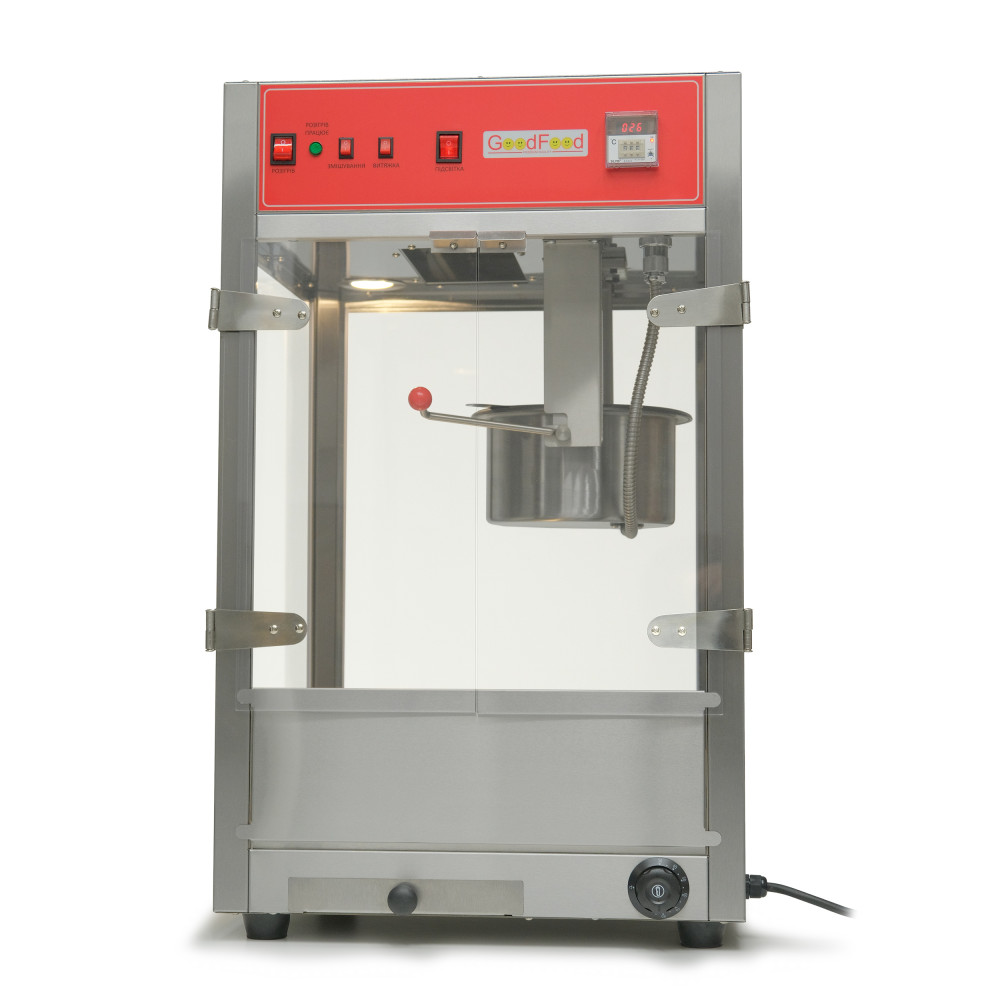 Апарат для приготування попкорну GoodFood PCM12 SILVERCORN створений для стабільного заробітку на гарячих закусках у форматі «тут і зараз». За 2 хвилини він готує повну чашу ароматного попкорну, привертає увагу підсвічуванням і декоративними наклейками, а просте керування трьома кнопками знімає питання навчання персоналу. Настільне електропідключення 230 В робить модель зручною для кіосків, фуд-кортів і мобільних точок. ART TRADE забезпечує офіційну поставку та сервісну підтримку.