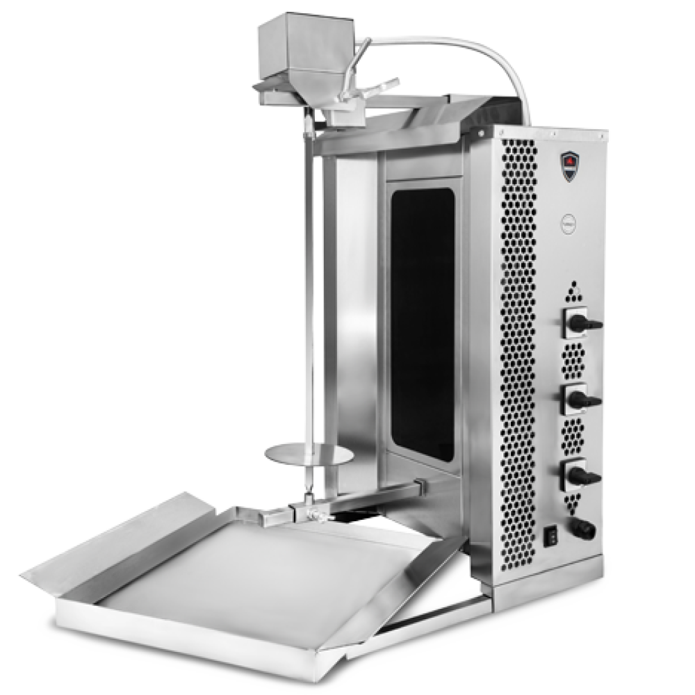 Електричний апарат для шаурми MED-03 MARS вигідно вирізняється на ринку завдяки великій місткості та рівномірному прожарюванню м'яса. Міцний корпус із нержавіючої сталі гарантує довговічність, а жаростійке скло забезпечує безпеку персоналу. Три зони нагріву дозволяють індивідуально налаштовувати температуру, що особливо важливо для різних видів м'яса та інтенсивності роботи.