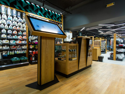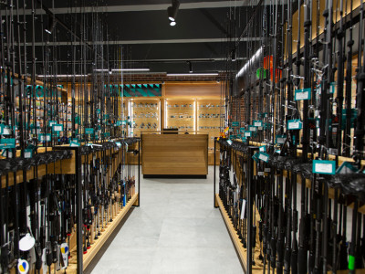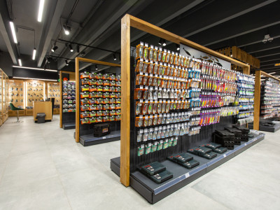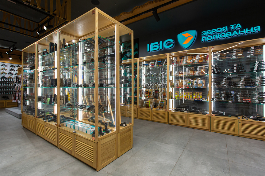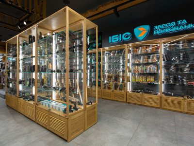 Магазин «Ібіс» — одна з найбільших в Україні мереж спортивного, мисливського та рибацького спорядження. Асортимент охоплює екіпіровку, аксесуари та товари для активного відпочинку. ART TRADE створив індивідуальні рішення для оформлення торговельних залів, підкреслюючи преміальний стиль і функціональність.