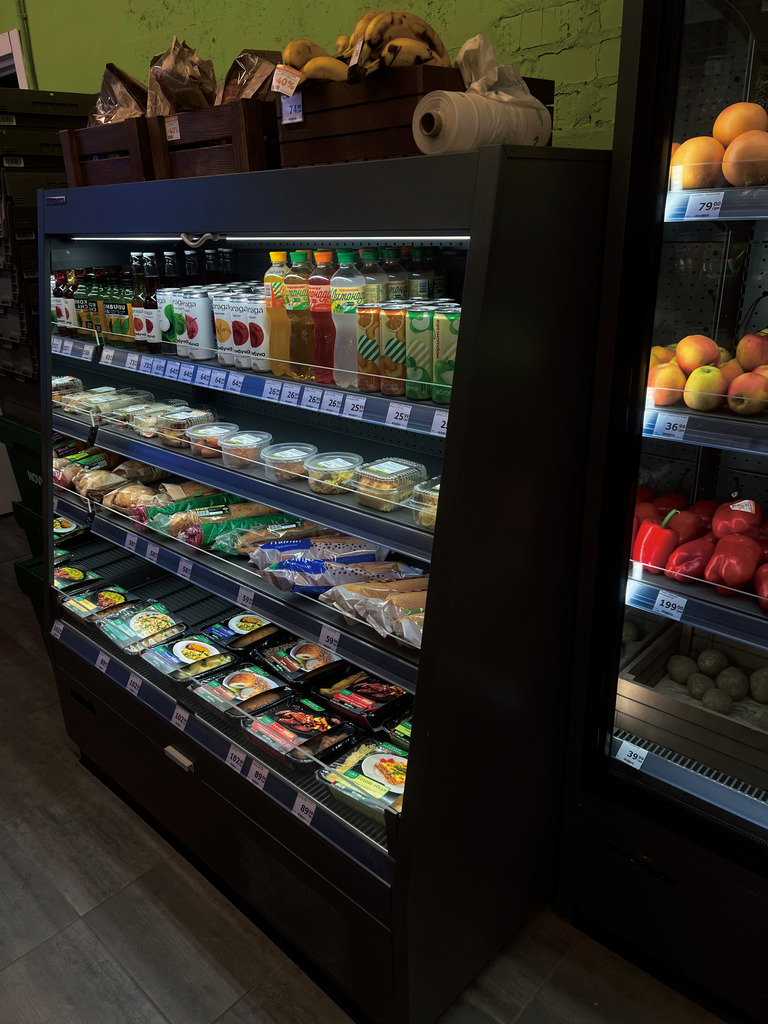 - холодильні вітрини для свіжих продуктів та напоїв;