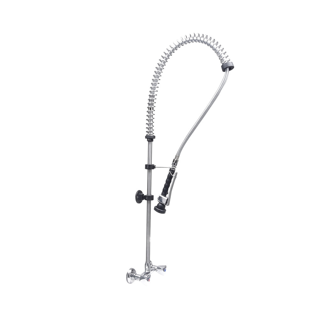 ЗастосуванняЗмішувач з душуючим пристроєм з додатковим краном застосовується для встановлення в стіну до мийної ванни для професійної посудомийної машини, а також використовується для миття овочів та фруктів.