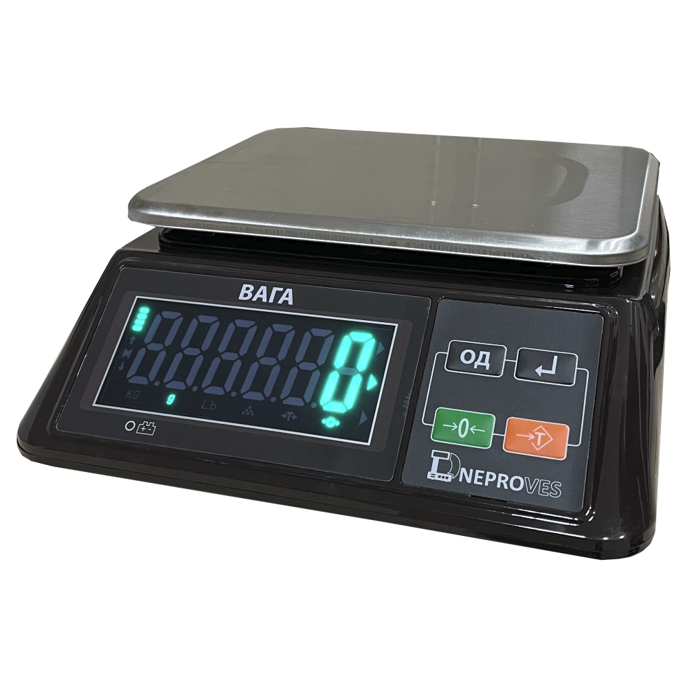 Фасувальні ваги Днепровес ВТД-ФЛ 15кг створені для швидкого й точного фасування продуктів у торгівлі та на виробництві. Великий зелений LED-дисплей із висотою символів 42 мм добре читається здалеку, а великі клавіші пришвидшують роботу оператора. Пилозахист кнопки увімкнення та роз’єму заряджання підвищує надійність у щоденній експлуатації. Вбудований акумулятор забезпечує автономність, платформа 220×275 мм зручна для лотків та пакетів. Це надійні Ваги фасувальні, що тримають стабільність у діапазоні −10…+40 °C.