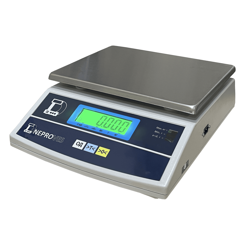 Фасувальні ваги Днепровес ВТД-Т3С 15кг — компактний інструмент для швидкого і точного зважування інгредієнтів, напівфабрикатів та готових порцій. Ціна поділки 5 г забезпечує стабільну якість страв і контроль собівартості, а мінімальна вага від 100 г дозволяє працювати як з невеликими порціями, так і з місткими лотками. Платформа 195×245 мм зручна для гастроємностей, РК-дисплей добре читається, акумулятор дає автономність, а робота в діапазоні −10…+40 °C гарантує надійність у реальних умовах кухні.
