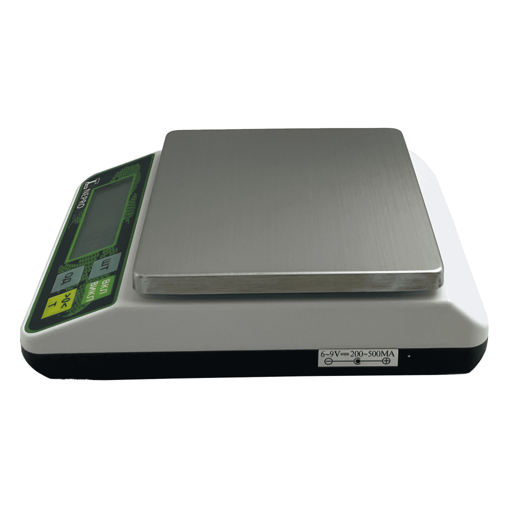 Компактність без компромісів. Платформа 155×155 мм зручна для невеликої тари, а загальна маса 1,4 кг спрощує переміщення між зонами кухні чи лініями фасування.