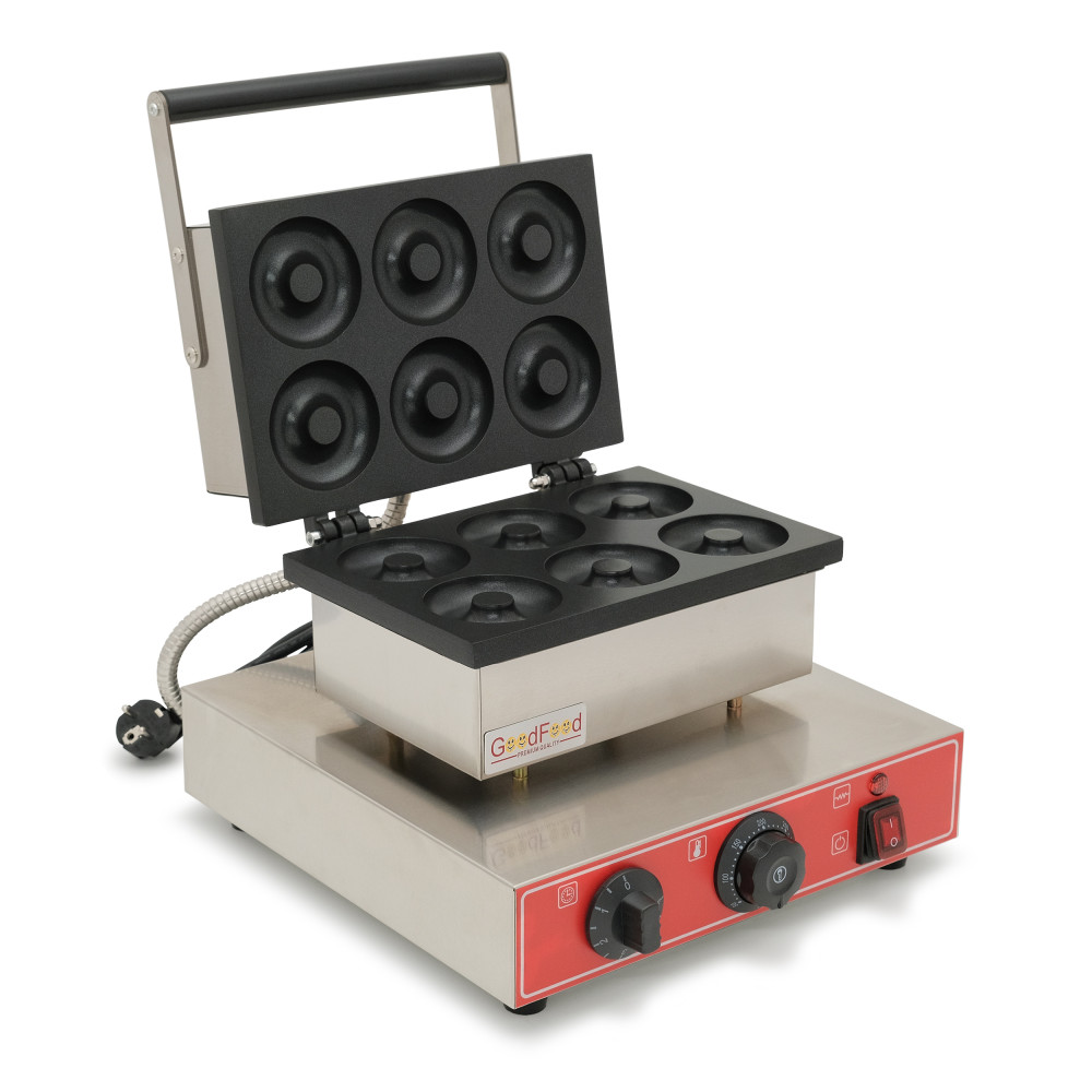 Гриль для пончиків (донатсів-американських пончиків) GoodFood DM6А — професійне рішення для стабільної якості й швидкого випуску популярних донатів. Апарат дозволяє отримувати рівномірно пропечені вироби чіткої форми, зручні для подальшої глазурі та декору. Працює від звичайної розетки 220 В, легко очищується та економно споживає електроенергію завдяки продуманій конструкції.