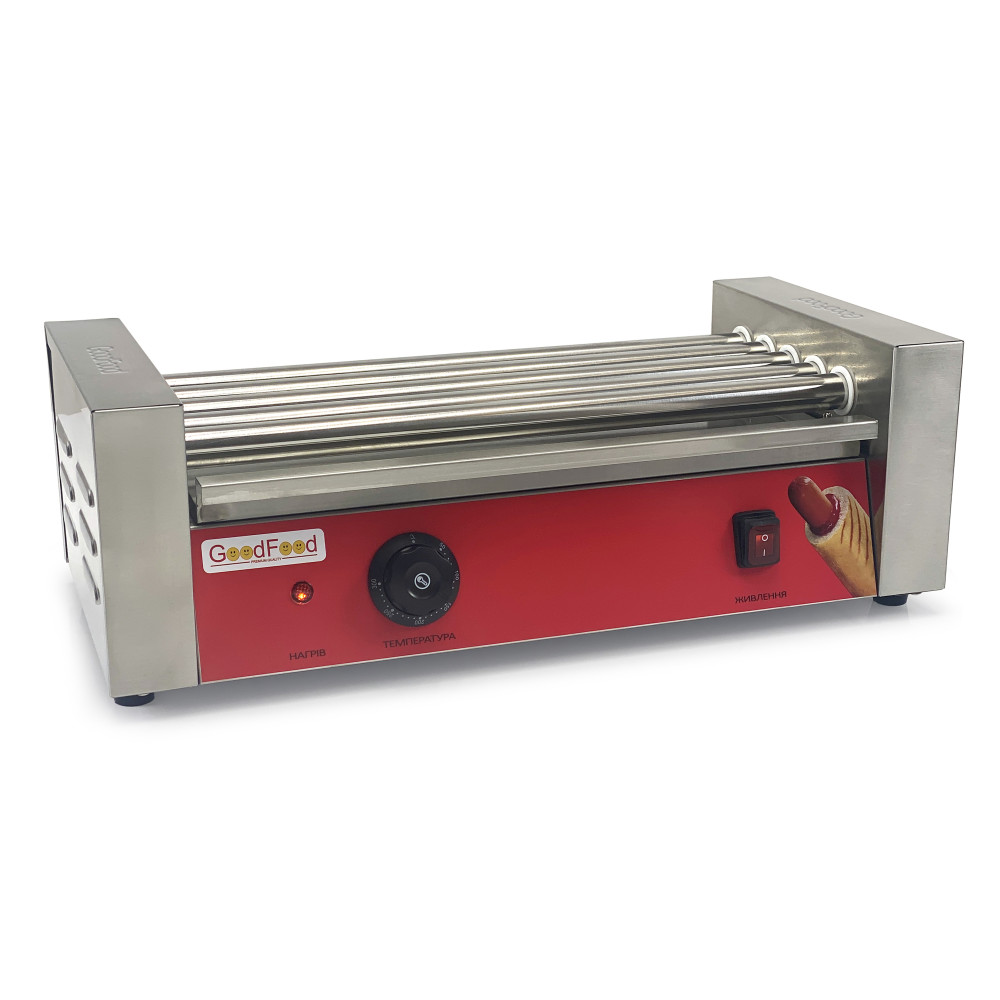 Гриль роликовий GoodFood HDRG5 RED — компактне настільне рішення для швидкого та рівномірного обсмаження сосисок, сарделек і ковбасок у форматі хот-догів. Завдяки потужності 1 кВт та напрузі 220 В пристрій стабільно працює без окремих ліній електроживлення, а терморегулятор 50-300 С дозволяє точно налаштувати температуру під різні продукти. Корпус із нержавіючої сталі і ролики з харчової сталі забезпечують гігієну, довговічність і просте щоденне обслуговування. Яскравий RED-дизайн привертає увагу покупців і підсилює імпульсні продажі на вітрині.
