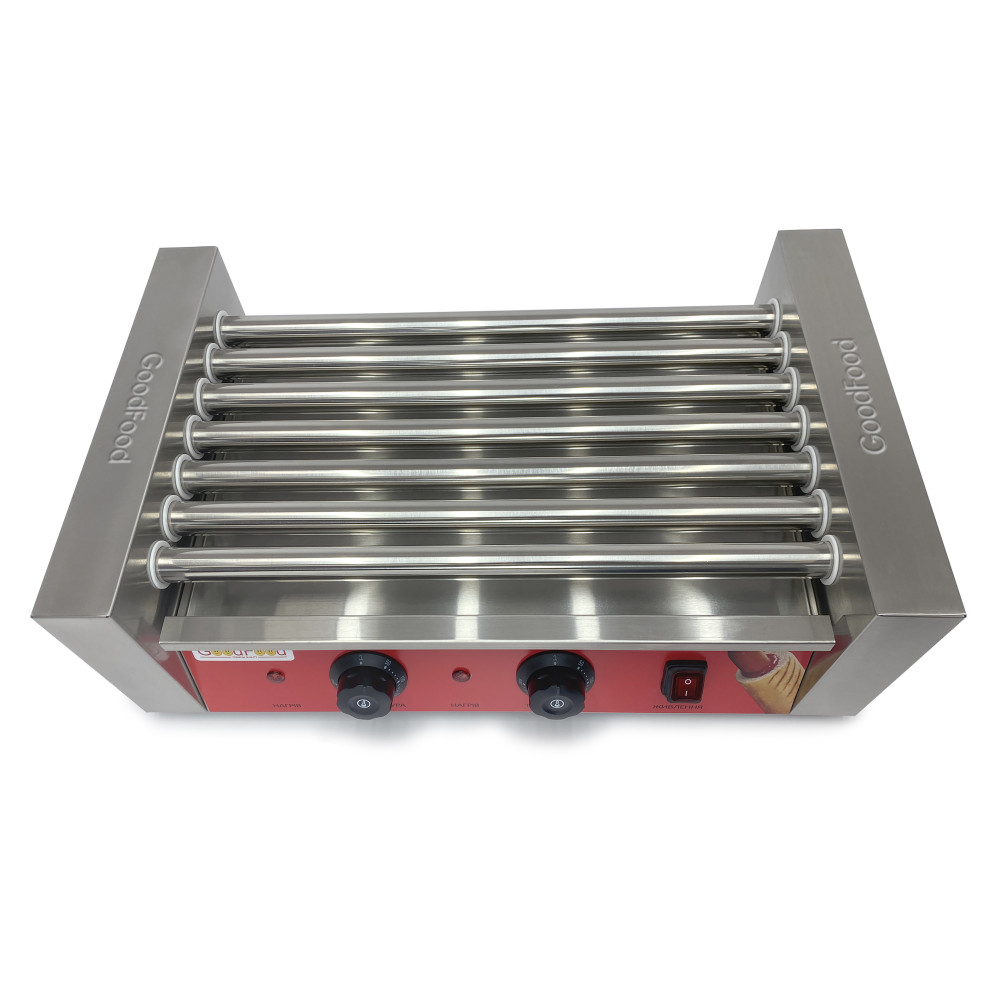 Потрібен компактний і надійний інструмент для стабільного продажу хот-догів у години пік? Гриль роликовий GoodFood HDRG7 RED рівномірно обсмажує сосиски на 7 роликах і дає змогу одночасно готувати та підтримувати тепло завдяки двом незалежним зонам. Корпус із нержавіючої сталі та ролики з харчової сталі гарантують гігієнічність, довговічність і просте щоденне обслуговування в інтенсивному режимі.