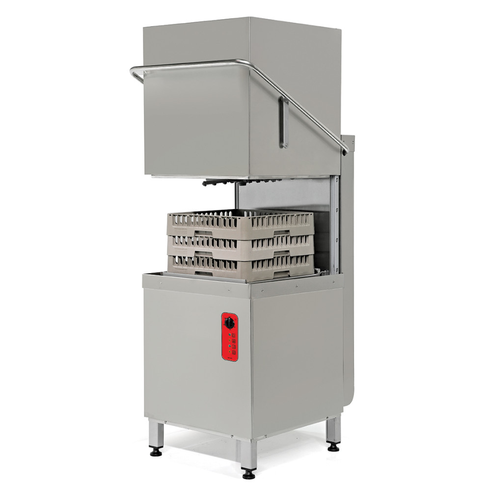 Купольний формат прискорює цикл: оператор працює двома руками, а купол закривається легко й без зусиль — менше простоїв і помилок. Чотири програми 60/90/120/180 сек. дозволяють не «перемивати» посуд — ви обираєте рівно стільки часу, скільки потрібно, економлячи електроенергію та хімію. Насоси Olympia (Італія) забезпечують стабільний тиск і рівномірне ополіскування, що помітно по блиску скла та сталі. Корпус із неіржавної сталі тримає геометрію під навантаженням і легко миється наприкінці зміни. Продуктивність 70-60 кошиків на годину покриває ланч- та дінер-години без черг посуду, а місткість 16-14 тарілок у кошику робить планування потоку передбачуваним. Дозатори миючого та ополіскувального засобів автоматизують витрату — персонал менше втручається, результат стабільний щозміни.
