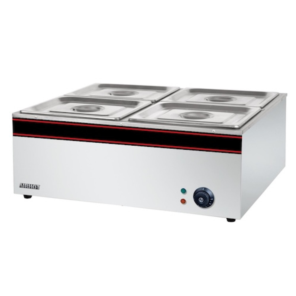 Електросупниці-марміти покликані тримати готові страви стабільно гарячими без пересушування. Саме таким рішенням є модель AIRHOT BM-4 — надійний Марміт з електричний підігрівом, що швидко виходить на робочий режим і підтримує його протягом усього дня. BM-4 упорядковує видачу, скорочує втрати та допомагає зберегти смак і текстуру страв на лінії роздачі чи в шведській лінії.