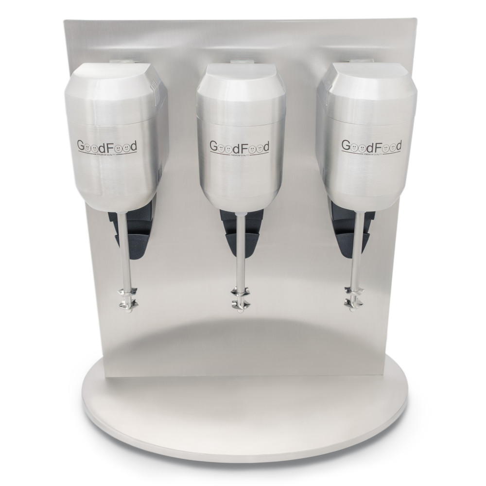 Міксер молочний GoodFood MFD33 створений для швидкої подачі стабільно однорідних мілкшейків і коктейлів у закладах з інтенсивним потоком гостей. Три робочі пости дають змогу готувати до трьох напоїв одночасно, а дві швидкості забезпечують потрібну текстуру для різних рецептур. Корпус і чаші з нержавіючої сталі витримують щоденні навантаження, зберігаючи гігієну та презентабельний вигляд барної зони.