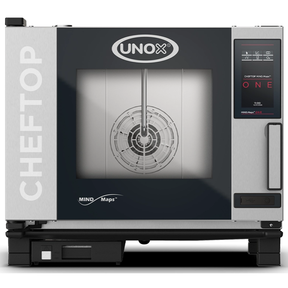 Сенсорна панель ONE скорочує час навчання персоналу: стандартні програми викликаються у два дотики, тож нові страви легко масштабувати між змінами й точками. П’ять рівнів GN 1/1 з кроком 67 мм дають щільну посадку без ризику нерівномірного пропікання — циркуляція пари та повітря зберігає текстуру і колір продукту. 7 кВт забезпечують швидкий вихід на режим, а можливість підключення 220/380 В спрощує інтеграцію в існуючу електромережу.