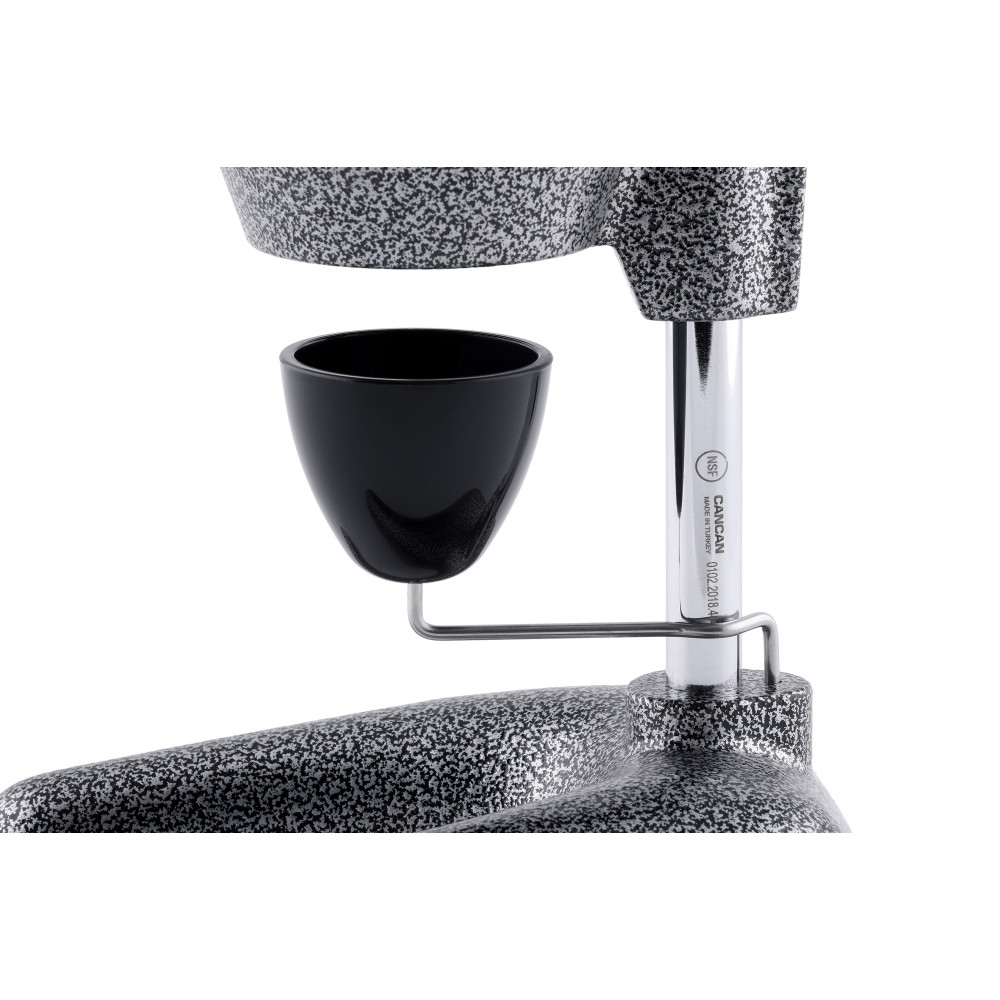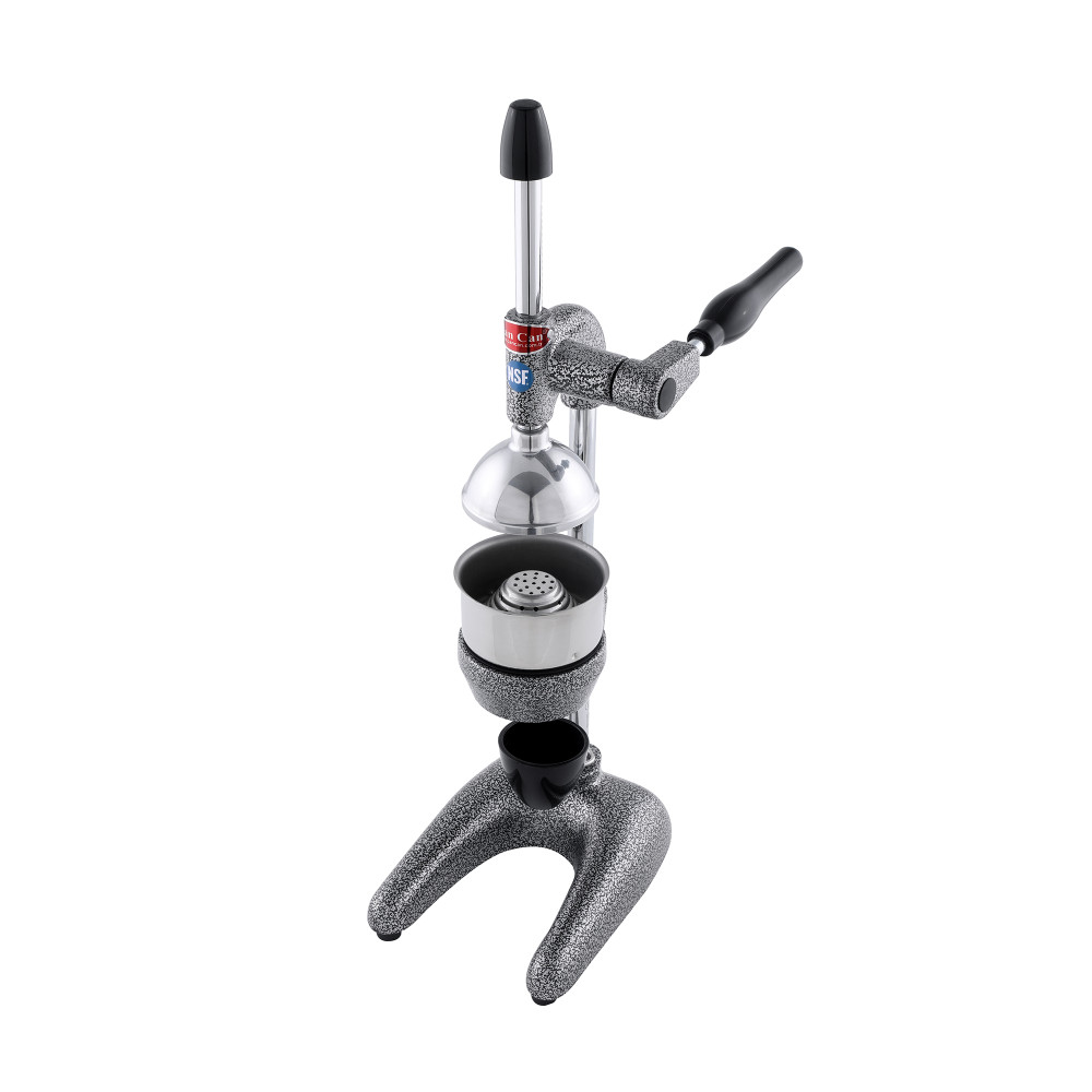 Стабільний результат у години пік: вага 4,54 кг і збалансований важіль утримують прилад нерухомо, тож оператор працює швидко та без втрат соку. Контактні елементи з нержавна сталь легко мити, вони стійкі до кислот і не вбирають запахи — смак завжди передбачуваний. Покриття корпусу електростатичною фарбою захищає від подряпин і корозії, зберігаючи преміальний вигляд у щоденній експлуатації. Чаша 110 мм приймає половинки великих апельсинів і грейпфрутів, а настільна конфігурація економить простір: габарити 190х290х550 мм легко вписуються навіть у вузьку барну станцію. Ручний привід працює тихо, тому підходить для відкритих барів і ранкових сніданків у готелі — без фону двигуна та зайвих вібрацій. Гарантія 12 місяців підтверджує ресурс і надійність моделі Cancan 0102 у професійних умовах.