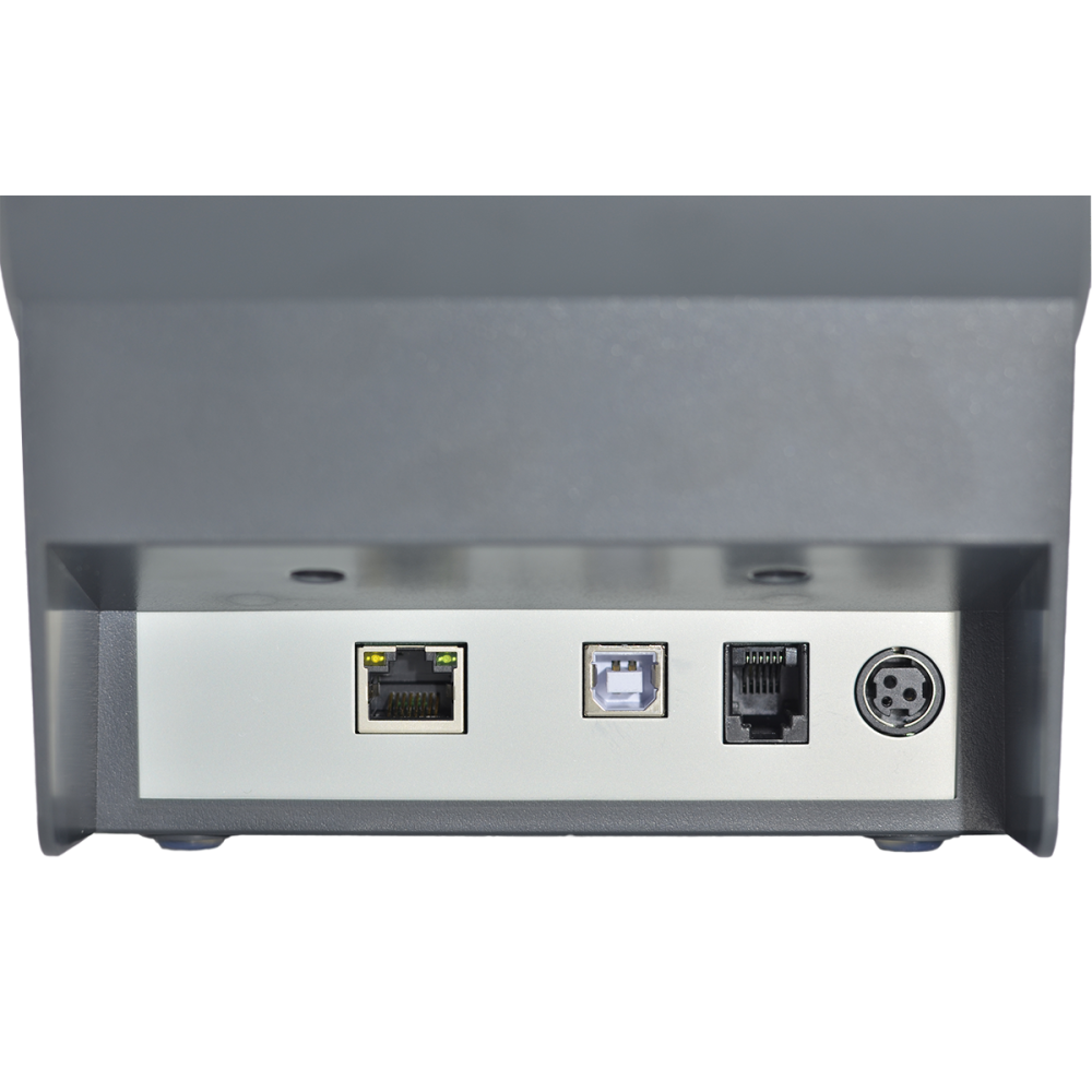 Принтер укомплектований типовими інтерфейсами передачі даних: USB, Ethernet, а також має порт для підключення грошової скриньки, 24Вт. Зручними доповненнями до надійності "заліза" буде комплектація принтера. Оснащений такими функціями, як: