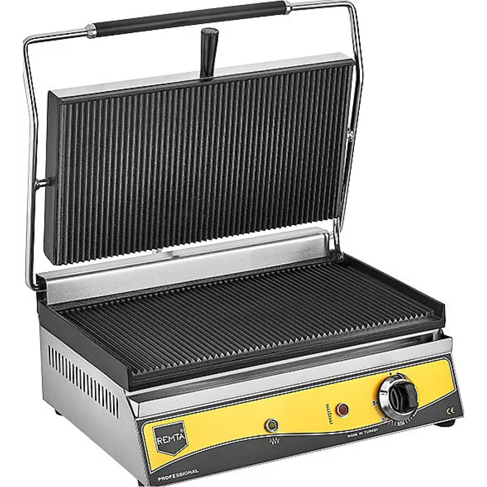 Електричний притискний паніні-гриль R68 Remta — це оптимальний вибір для швидкого та рівномірного приготування паніні, сендвічів, стейків і овочів. Модель поєднує продуктивність, міцність і зручність експлуатації, що робить її незамінною на кухні будь-якого закладу громадського харчування. Завдяки високій потужності та просторій робочій поверхні ви зможете обслуговувати більше клієнтів без втрати якості.