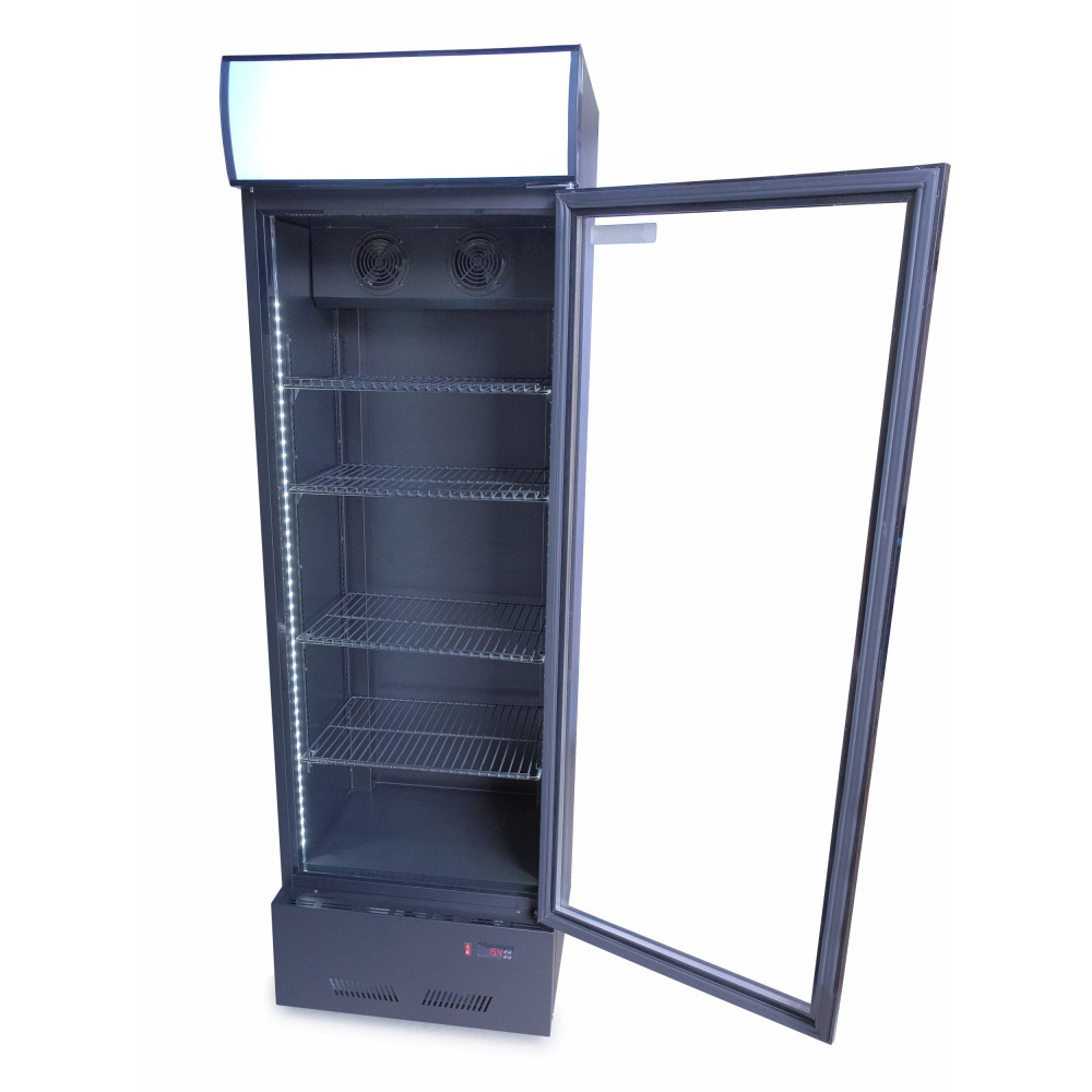 Шукаєте надійне рішення для презентації охолоджених напоїв і стабільної температури з першої години роботи? Шафа холодильна для напоїв GoodFood BC360BB2LED чорна-чорна поєднує комерційний ресурс, привабливу викладку та просте щоденне обслуговування. Стильний чорний корпус із лайтбоксом зверху підсилює помітність бренду, а подвійний склопакет і динамічне охолодження гарантують рівномірний холод і чіткий огляд вмісту упродовж дня.
