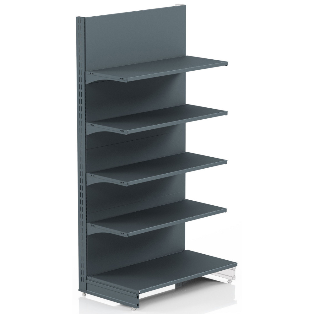 Торговий стелаж відрізняється високою міцністю, витримує рівномірне навантаження до 750 кг, не потребує кріплення до стіни, а модульна конструкція дозволяє легко адаптувати обладнання під специфіку вашого магазину. Перфорована задня панель дає змогу використовувати додаткові навісні елементи — гачки, кошики, полиці, що підвищує функціональність і компактність викладки. Регульовані ніжки забезпечують стійкість навіть на нерівних поверхнях, а лаконічний дизайн у кольорі антрацит гармонійно впишеться в будь-який інтер’єр.