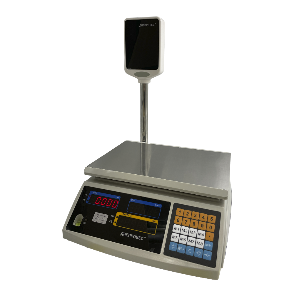 Точність 1 г і стабільність показів дозволяють впевнено відпускати делікатні товари — випічку, спеції, сир, каву. Контрастний LED-дисплей читабельний під прямим світлом та у прохолодних приміщеннях, а індикатор на стійці забезпечує прозорість розрахунку для покупця. Вбудований акумулятор і економний режим рятують під час виїзної торгівлі та при перебоях електроживлення. Платформа 230×305 мм — зручна площа для лотків і гастроємностей, а міцний корпус витримує інтенсивне навантаження протягом дня. Пам’ять цін і підсумовування прискорюють роботу касира і зменшують кількість помилок. Торгові ваги цієї моделі невибагливі в умовах холоду до -10 C, тому впевнено працюють на відкритих ринках у міжсезоння. Простий функціонал без зайвих опцій знижує поріг навчання персоналу і пришвидшує старт продажів.