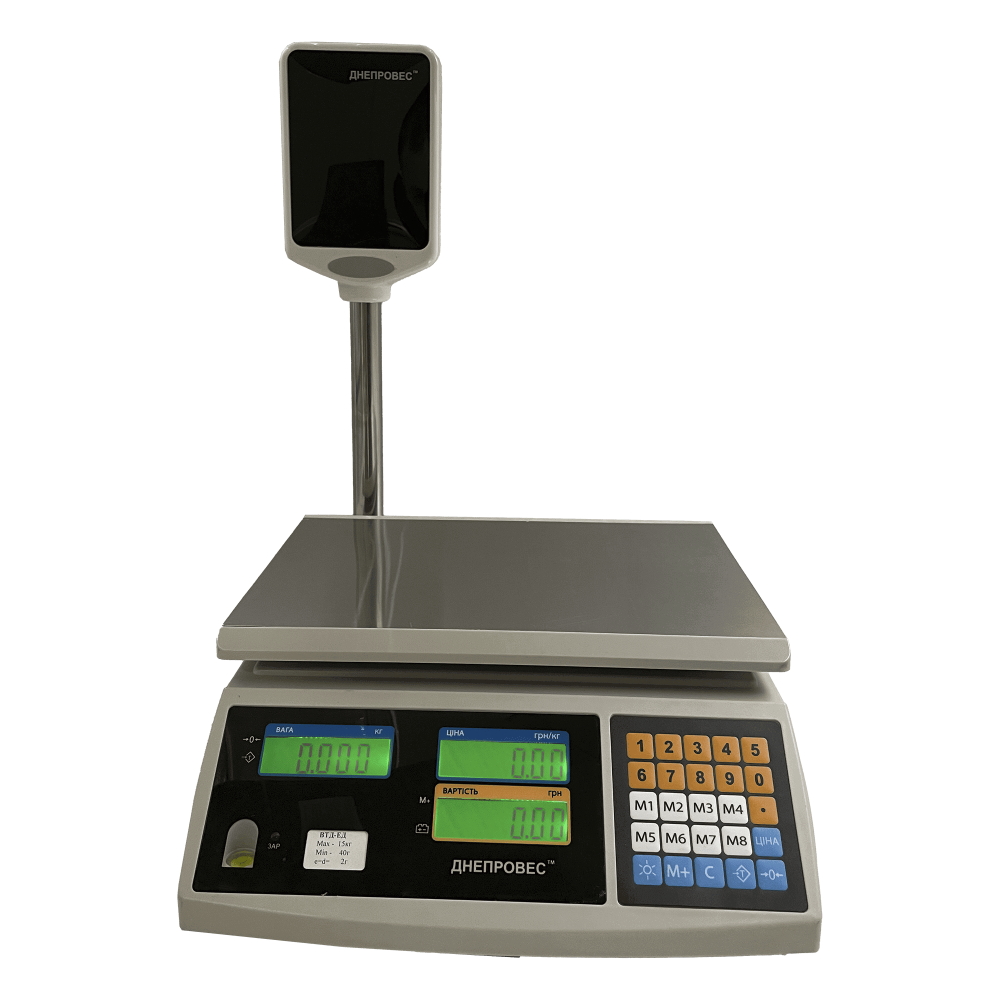 Днепровес ВТД-ЕД-ЖК 30 кг — професійне рішення для точного зважування та швидкого розрахунку вартості на торгових точках і ринках. Це ті самі Торгові ваги, які заслужили довіру завдяки довгій історії безвідмовної роботи: стабільні показники, зрозуміле керування, впевнена робота в холоді й автономність там, де немає розетки. Модель забезпечує коректний облік і прозорість розрахунків для продавця та покупця.