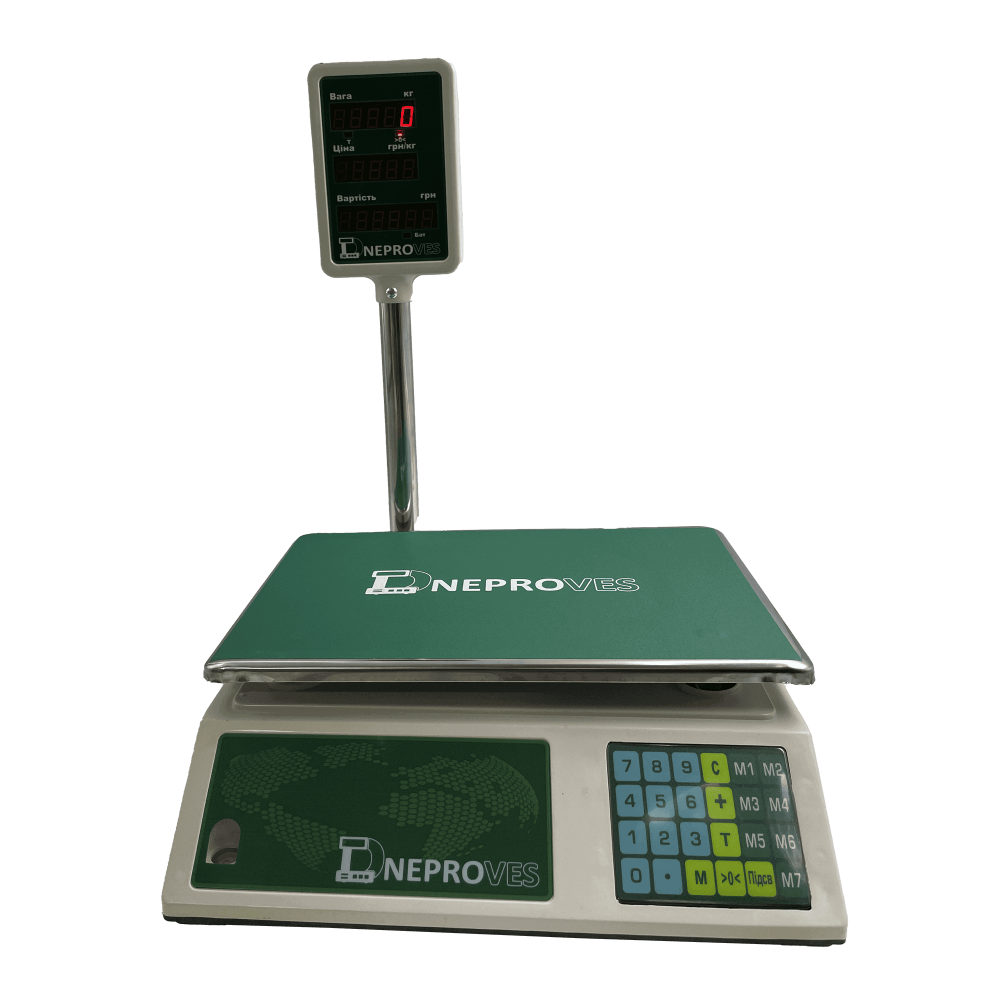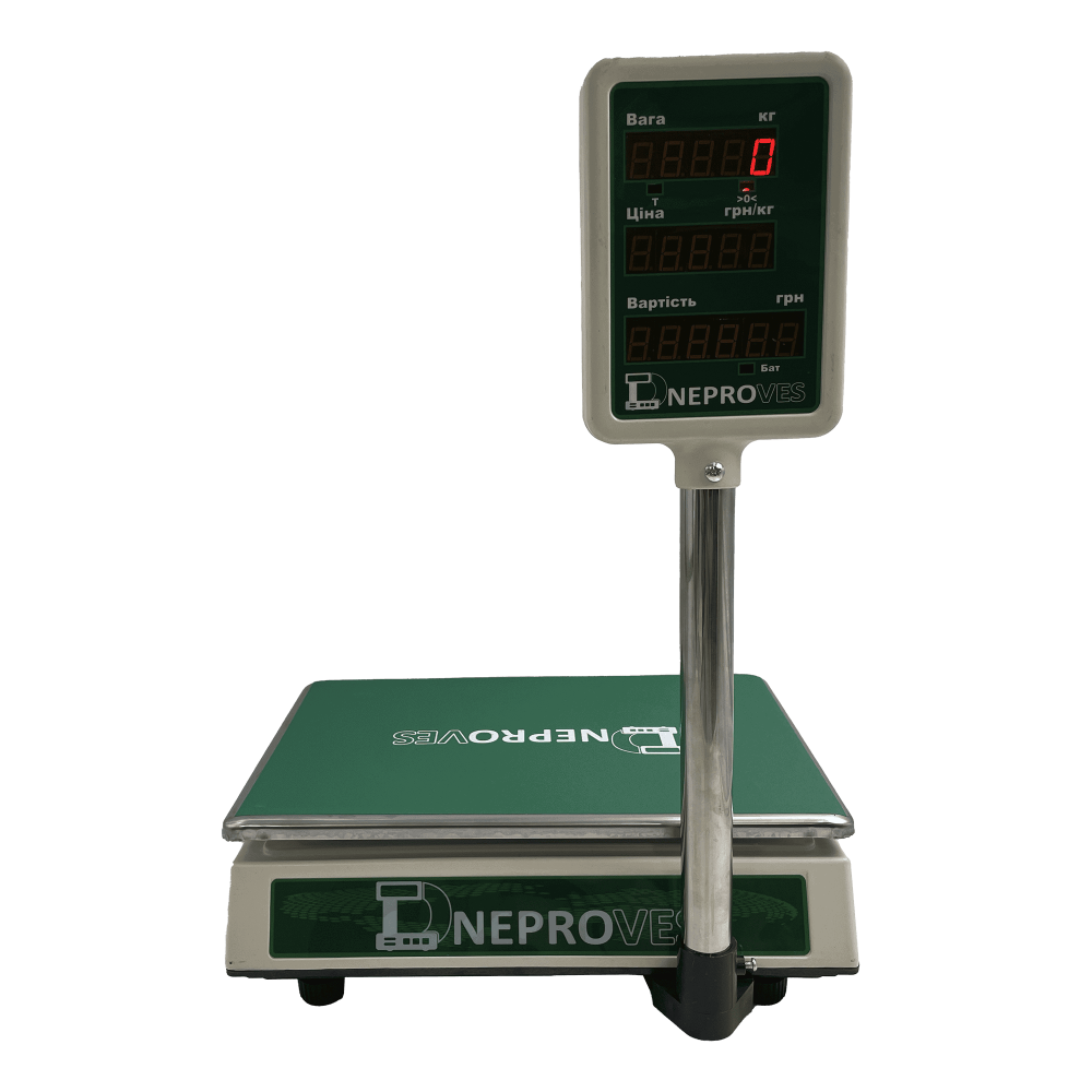 Міцна платформа 230×335 мм приймає як дрібні, так і середні позиції — від випічки до гастрономії. Світлодіодні індикатори на стійці одночасно інформують продавця та покупця, підсилюючи довіру до результату. Вбудований акумулятор і автоекономія дають свободу працювати на виїзній точці, не боячись перебоїв електромережі. Точність 5 г та нижній поріг 100 г забезпечують акуратні розрахунки без перезважувань. Підсумовування та пам’ять цін скорочують час обслуговування у години пік. Відсутність зайвих інтерфейсів зменшує ризик збоїв і спрощує щоденну експлуатацію. Модель Днепровес — популярний вибір українських підприємців завдяки поєднанню вартості, ресурсу та стабільної роботи.