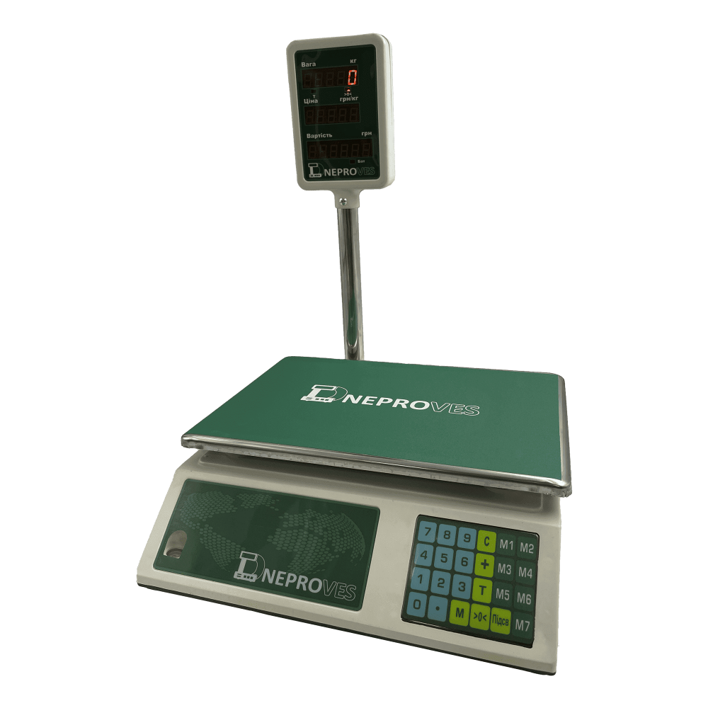 Торгові ваги Днепровес ВТД-ЛД 6кг — надійне рішення для точного зважування і швидкого розрахунку вартості на прилавку, ринку чи у відділі супермаркету. Яскраві LED-дисплеї на стійці добре читаються з боку продавця і покупця, а вбудований акумулятор гарантує автономність там, де розетки не під рукою. Модель поєднує простоту керування і стабільну точність 2 г, тож кожна операція проходить без затримок і помилок. Якщо ви шукаєте, де купити Торгові ваги з перевіреною якістю — ця модель створена для щоденної інтенсивної роботи.