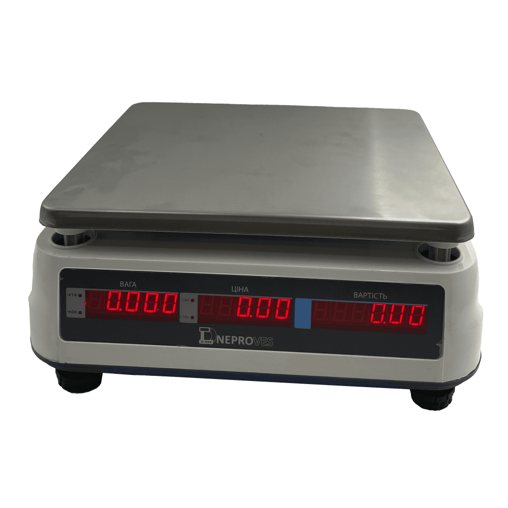 Днепровес ВТД-РД1 15 кг — розумне рішення для швидкого зважування з миттєвим розрахунком вартості та коректною передачею даних у касу чи облікову систему. Через RS-232 ваги інтегруються з ПК/касовим апаратом за одним із трьох протоколів: ICS NT (Mettler Tolledo), CAS, DIGI DS-788. Модель створена для щоденної інтенсивної експлуатації, коли важливі точність, швидкість та прозорість розрахунків. Якщо ви шукаєте надійні Торгові ваги без зайвого ускладнення — це саме вони.