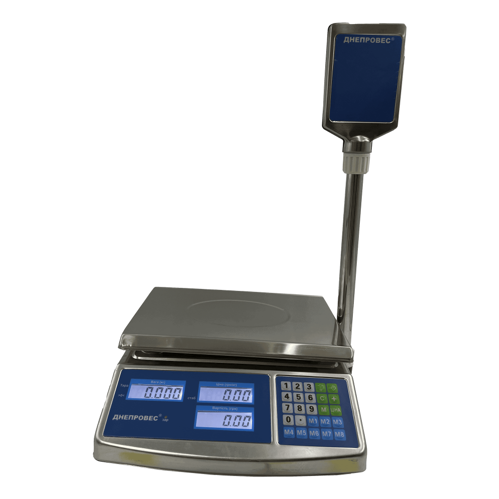 Днепровес ВТД-СЛС-115кг — надійні ваги для щоденної роботи в супермаркетах, магазинах і на ринках. Повністю нержавіючий корпус витримує інтенсивну експлуатацію та регулярну санітарну обробку, а бокова стійка звільняє робочу поверхню і зберігає ідеальну читабельність показів. Ці Торгові ваги створені, щоб пришвидшити обслуговування, зменшити помилки касирів і забезпечити стабільну точність у будь‑яких умовах.