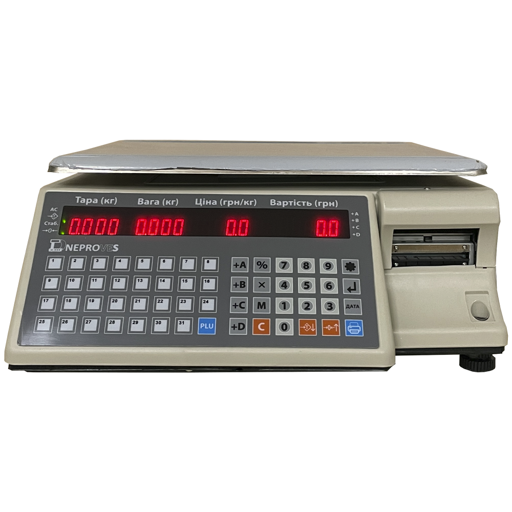 Днепровес ВТД-ВСК1 30 кг — професійна модель, що поєднує точне зважування та миттєвий друк термоетикетки. Це компактний інструмент для магазинів, пекарень, ринків і виробничих ліній, де важливі швидкість, інформативність етикетки та стабільна інтеграція з обліком. Якщо ви шукаєте надійні Торгові ваги з друком етикеток і підключенням до систем обліку — ця модель створена для безперебійної роботи щодня.