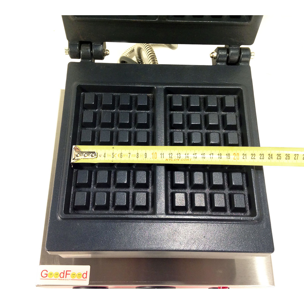 Вафельниця бельгійська квадратна з таймером GoodFood WB1SA — професійне рішення для швидкого та стабільного випікання двох об’ємних прямокутних вафель 170×105 мм з фактурою 4×6 і висотою зуба 11 мм. Настільна конструкція економить місце, а антипригарне покриття забезпечує легке виймання без зайвого масла. Вбудований таймер допомагає повторювати цикл випікання й тримати якість на одному рівні навіть у пікові години. Корпус із нержавіючої сталі витримує інтенсивні навантаження та швидко очищується.