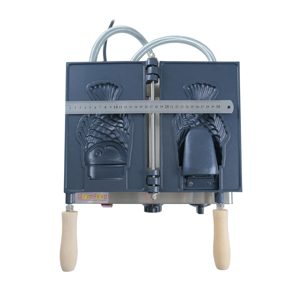 Вафельниця CREAM FISH GoodFood WB1CF створена для яскравих десертів і стабільного заробітку. Один відтиск у формі пустотілої рибки 165х100 мм дає хрустку оболонку з порожниною всередині — ідеальну для морозива, крему чи джему. Корпус із неіржавної сталі, робочі плити з антипригарним покриттям та одночасний нагрів згори й знизу забезпечують рівномірне пропікання, мінімум прилипань і швидку подачу. Підключення 220 В і потужність 1,6 кВт роблять модель зручною для будь-якої точки продажів без складного монтажу.