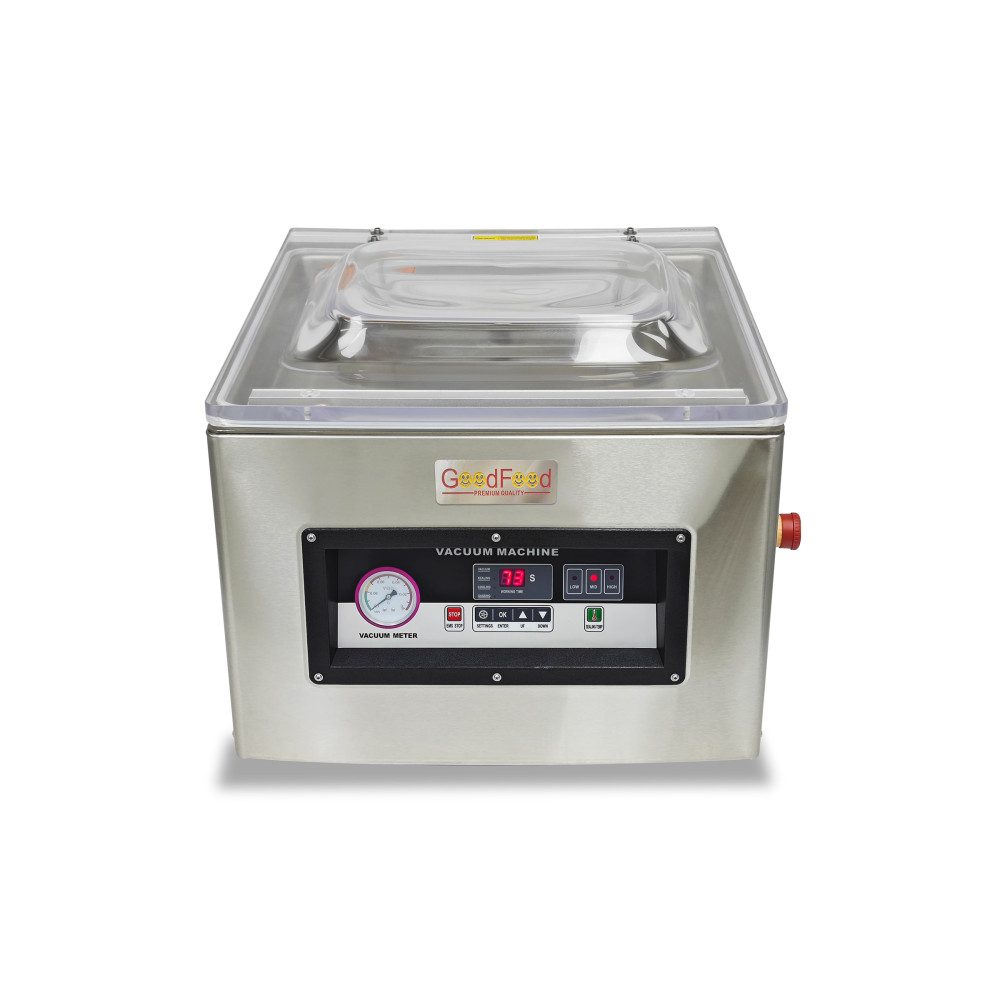 Вакуумно-пакувальна машина GoodFood VMP400DSB створена для швидкого та герметичного фасування продуктів у вакуумні пакети. Вона вирішує ключові задачі харчового бізнесу: збереження свіжості, акуратне порціонування та захист від окиснення й усушування. Компактний формат із встановленням на столі зручний для кухонь і цехів, а продуктивність забезпечує стабільний результат і контроль якості партії за партією. Артикул: VMP400DSB.