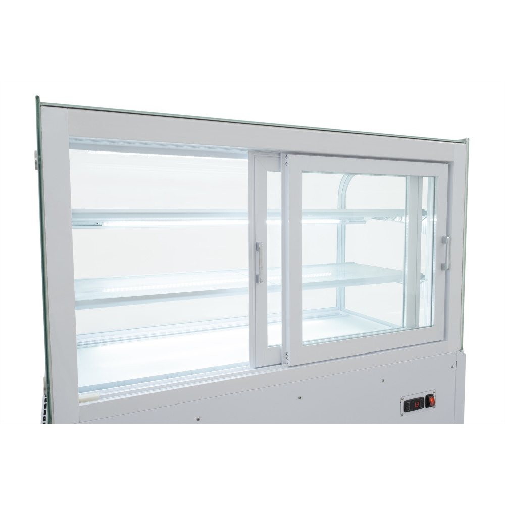 Вітрина холодильна GoodFood FW370R біла створена для ефектної подачі та надійного зберігання охолоджених продуктів. Вигнуте фронтальне скло з подвійним склопакетом забезпечує відмінний огляд і мінімізує запотівання, а LED підсвічування виділяє асортимент і стимулює імпульсні продажі. Рішення підходить для магазинів, кав’ярень, пекарень і гастробару, де важливо поєднати презентацію і стабільну температуру.