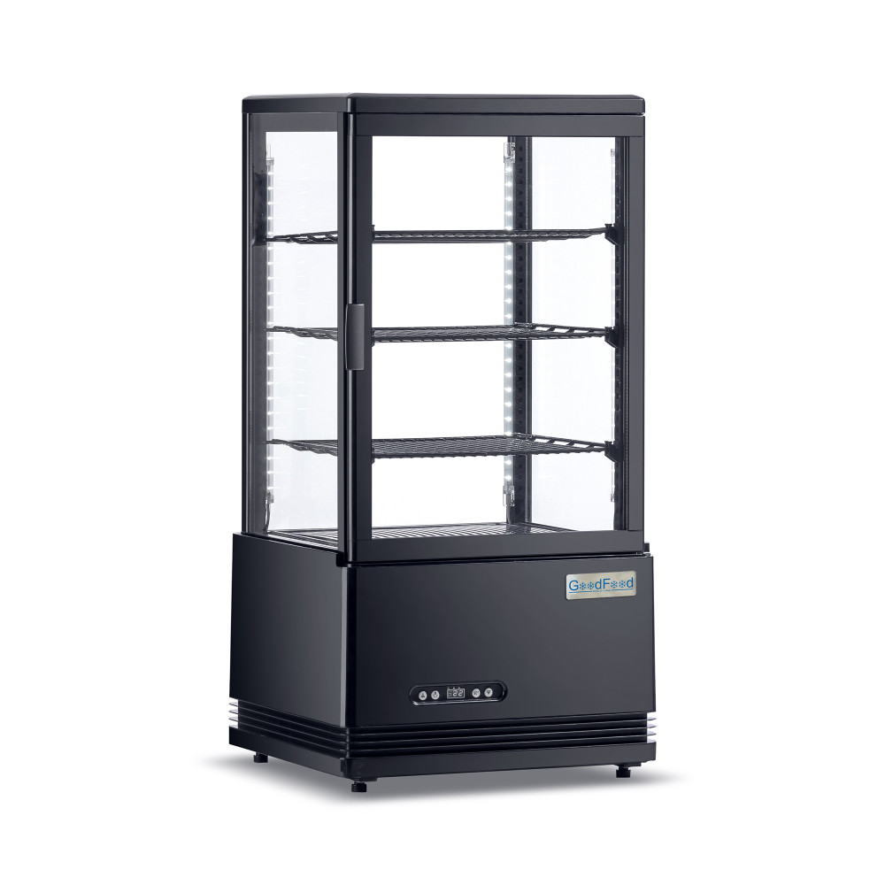 Холодильна вітрина GoodFood RT68L чорна — компактне та стильне рішення для презентації напоїв, десертів і кондитерських виробів. Завдяки настільному формату й оптимальному об’єму 68 літрів, ця міні вітрина ідеально підходить для кафе, магазинів, пекарень і точок швидкого харчування. LED-підсвітка забезпечує привабливе освітлення експозиції, акцентуючи увагу покупців на свіжості та якості продукції.