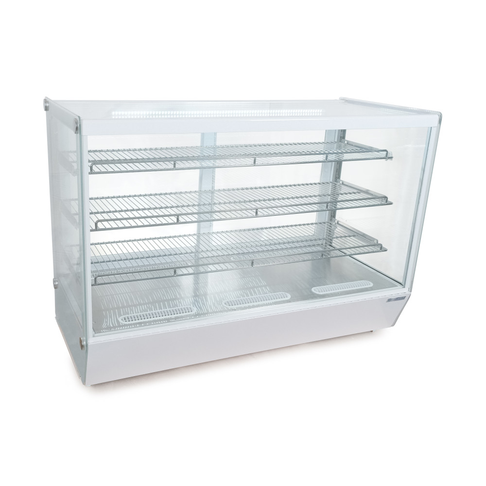 Вітрина холодильна GoodFood RTW295L5 біла створена для ефектної презентації і безпечного зберігання свіжих продуктів у торговому залі. Пряме фронтальне скло відкриває огляд на весь асортимент, верхнє LED підсвічування підкреслює фактуру десертів та гастрономії, а продумана ергономіка допомагає продавати більше з першого погляду. Робочий температурний режим 0...+12 C забезпечує свіжість, а точний діапазон налаштування термоконтролера +2...+6 C дозволяє швидко підібрати оптимальні умови під конкретний асортимент.