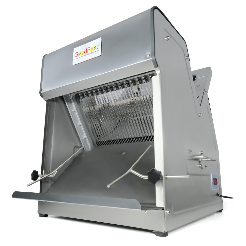 Потрібен швидкий і акуратний наріз хліба в години пік без втрати якості? Хліборізка професійна GoodFood BS12T31VIP забезпечує рівні скибки 12 мм при інтенсивному навантаженні — до 500 буханців хліба на годину. Контрольований зріз, харчова неіржавна сталь у зоні контакту та продумана підлогова конструкція допомагають підтримувати чистоту, безпеку і темп видачі навіть у найбільш завантажені зміни.