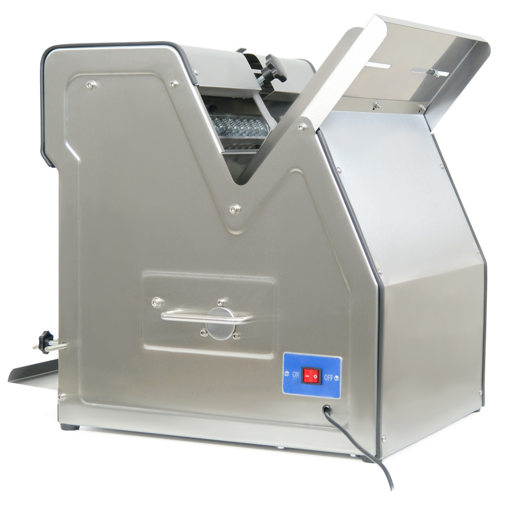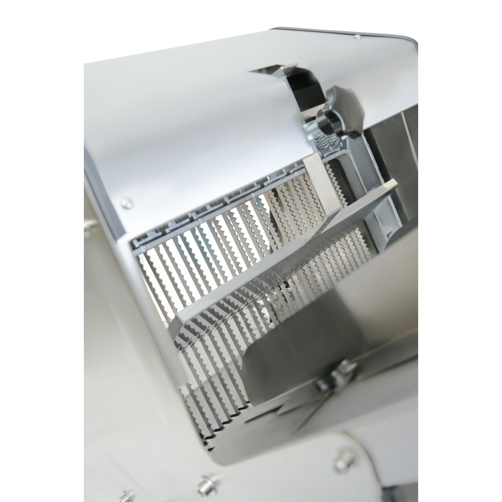 Стабільна геометрія скибок 12 мм зберігає презентацію виробів і дозволяє точно планувати порційність — менше списань, більше продажів. Ножовий пакет з 31 лезом працює рівно та передбачувано, забезпечуючи швидке обслуговування черги. Контактні поверхні з неіржавної сталі підтримують гігієнічність процесу і спрощують щоденне прибирання. Підлогове виконання додає стійкості та зручності розміщення у виробничій зоні. Енергоефективний привід 370 Вт при напрузі 220 В оптимізує витрати, а гарантія 12 місяців від ART TRADE підкріплює впевненість у виборі.