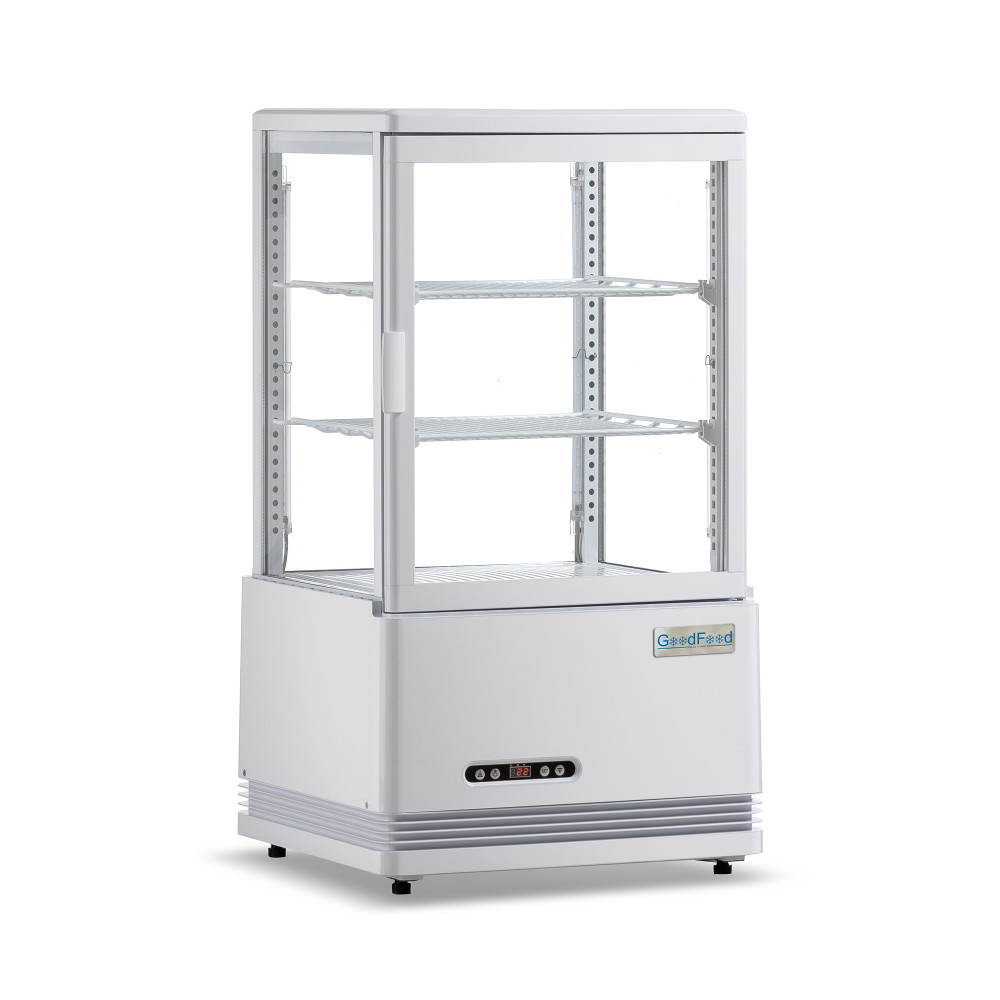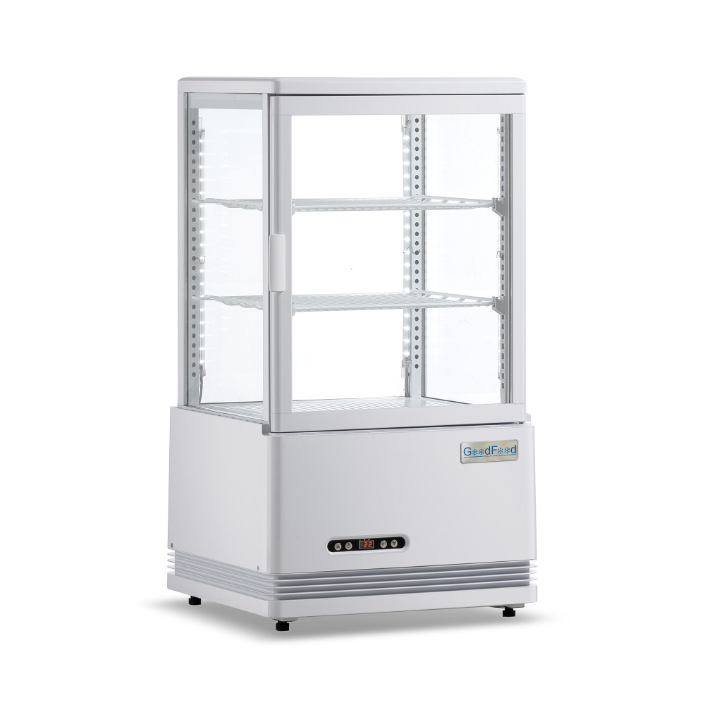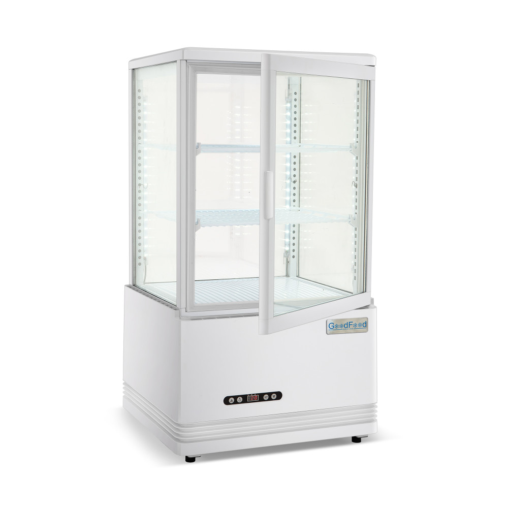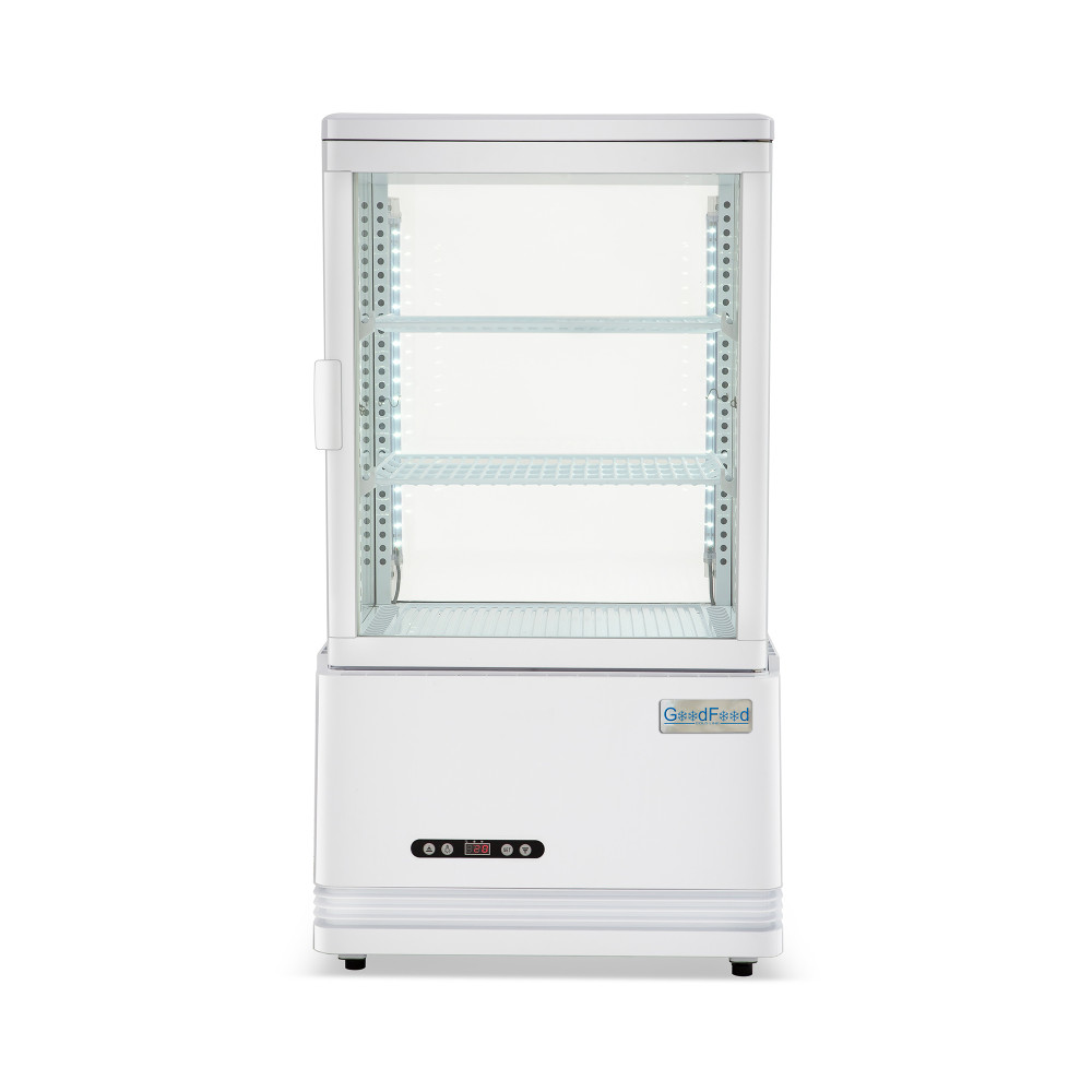 Компактная холодильная витрина эффективно демонстрирует и сохраняет свежесть десертов, напитков и готовых закусок в зоне продаж. Холодильная витрина GoodFood RT58L белая быстро наводит порядок в выкладке, равномерно охлаждает содержимое и привлекает внимание покупателей за счет обзорного стеклопакета и выразительной подсветки. Это практичное решение для ограниченных пространств у кассы, на барной стойке или на островной выкладке.